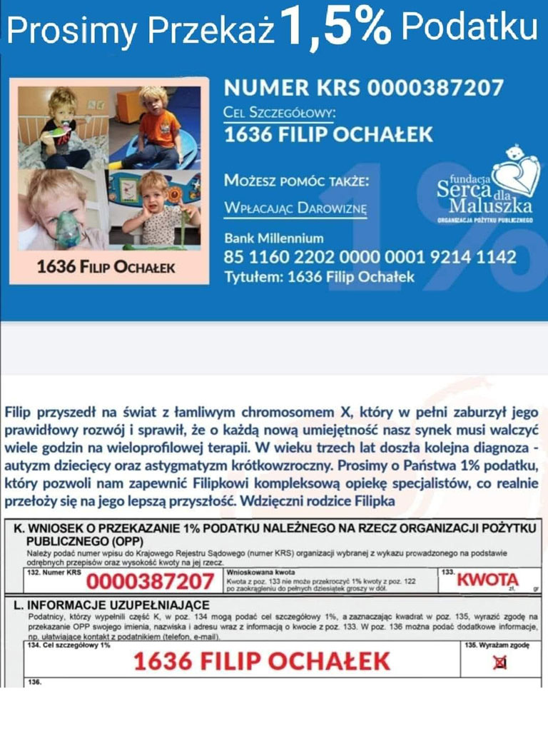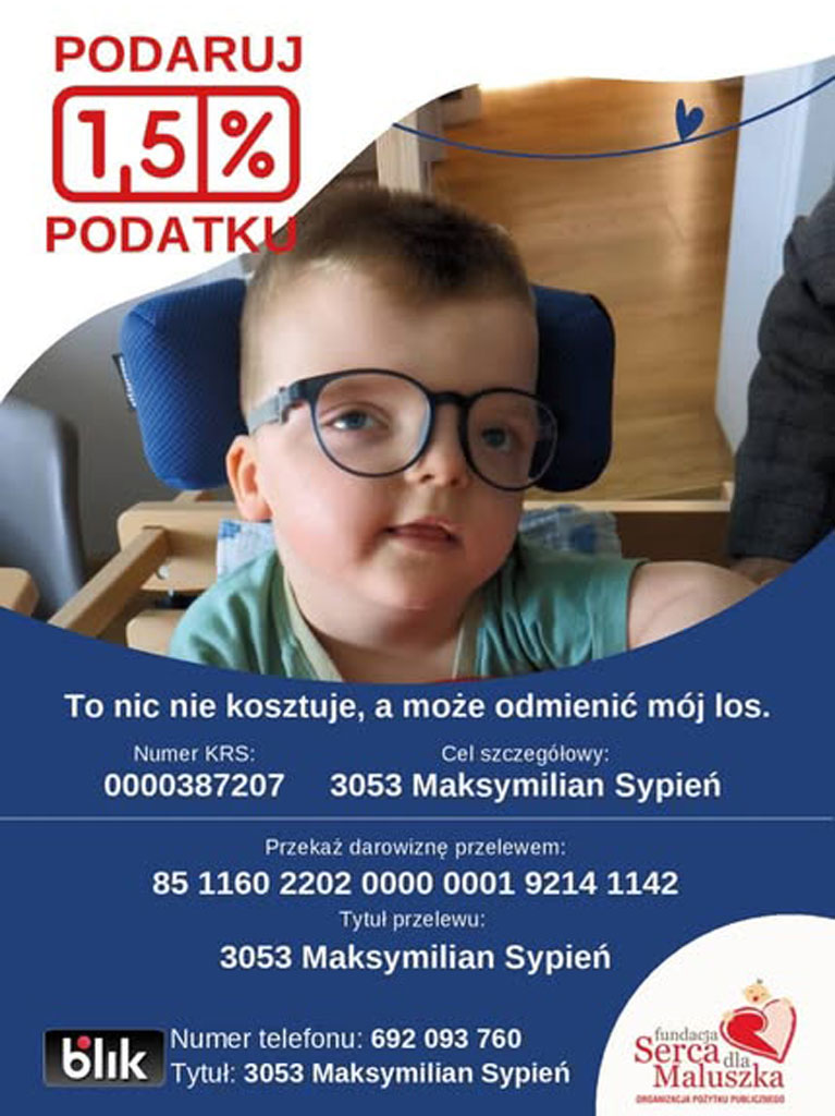 Podaruj swoje 1,5% podatku na Julkę, Filipa, Grzesia lub Maksymiliana!